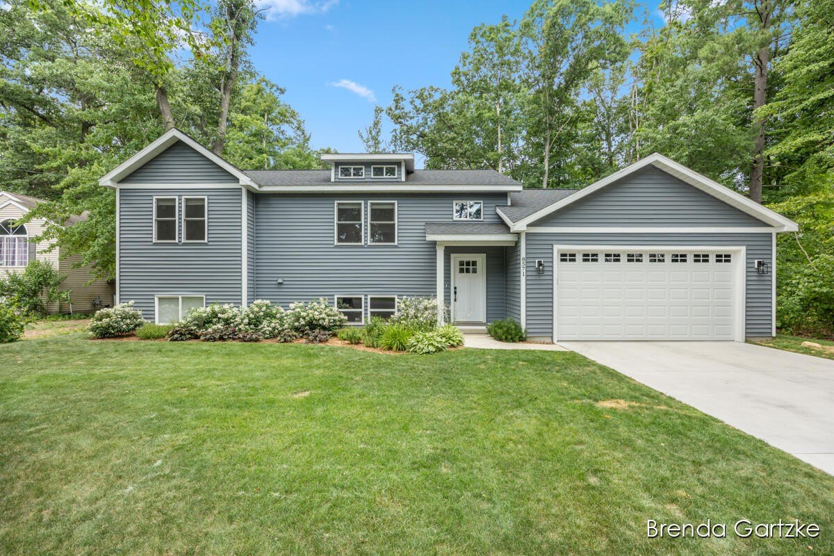 Waterfront living with 60ft on the main body of water on Indian Lake. Private lake access, this home has potential 3rd non-egress bedroom/office in lower level, large utility room with newer water softener, water heater, AC, & well pump & a walkout level to the water & great patio. Main floor offers a primary bedroom, a bath with laundry closet, kitchen and open LR with vaulted ceilings & eating area with an expansive deck overlooking the lake. Up is a bedroom and loft sitting area or room for a workstation area. T&G ceiling. A shed for extra storage is by the lake. Metal roof is approx 6 yrs new. Dock included. The lake offers 5 parks, great fishing, organized community activities, July 4th activities, all within a 50 min commute to Grand Rapids and 30 min to Rockford.